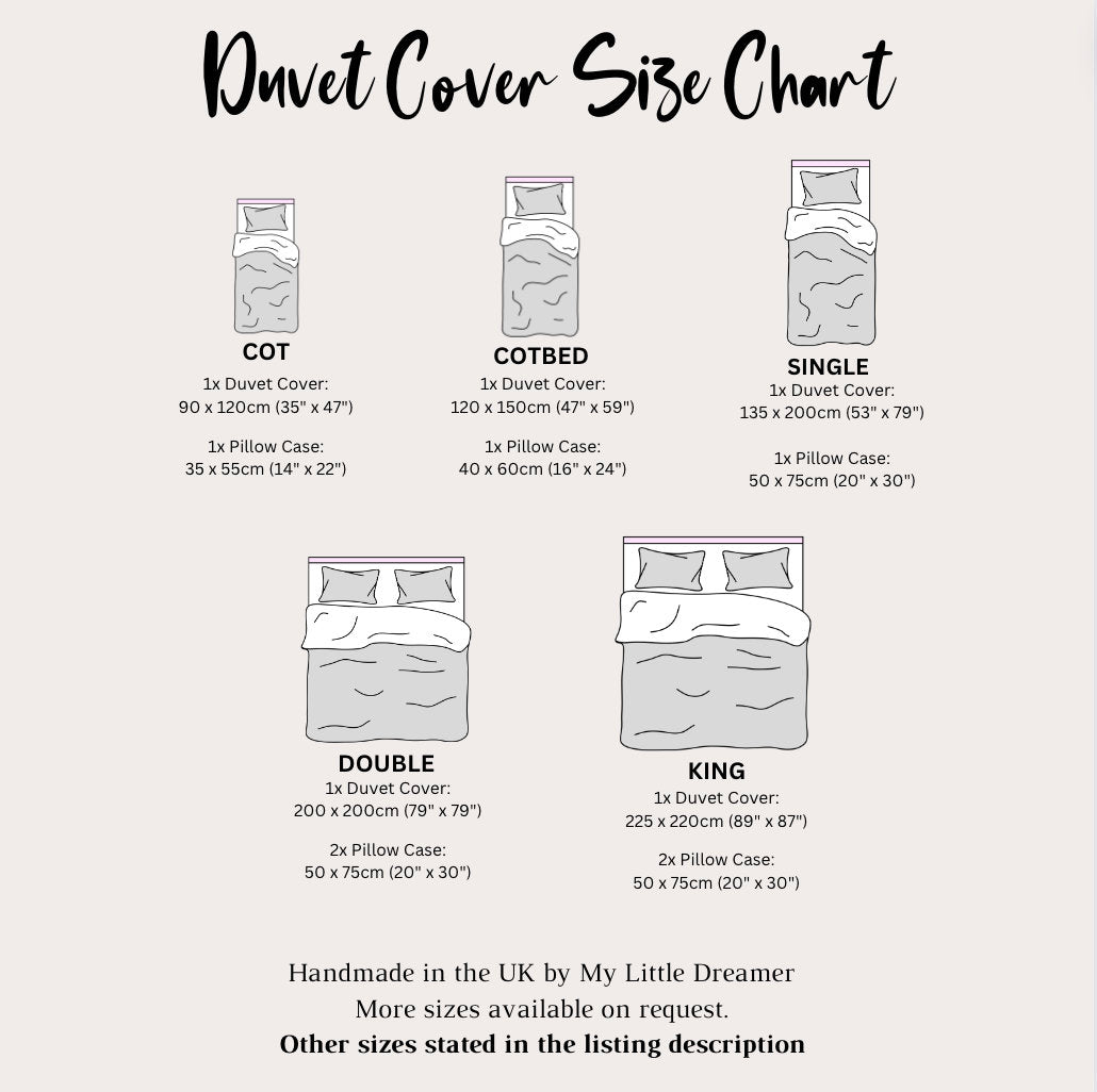 ◆ Please note that our bedding products, including duvet covers, fitted sheets, and pillowcases, are made to UK standard sizes. If you are ordering from outside the United Kingdom, we strongly advise you to double-check the size of your mattress and the bedding dimensions before placing your order. This will help ensure that the bedding you order is the correct size for your needs.