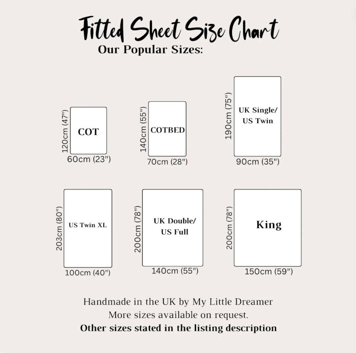 ◆ Please note that our bedding products, including duvet covers, fitted sheets, and pillowcases, are made to UK standard sizes. If you are ordering from outside the United Kingdom, we strongly advise you to double-check the size of your mattress and the bedding dimensions before placing your order. This will help ensure that the bedding you order is the correct size for your needs.