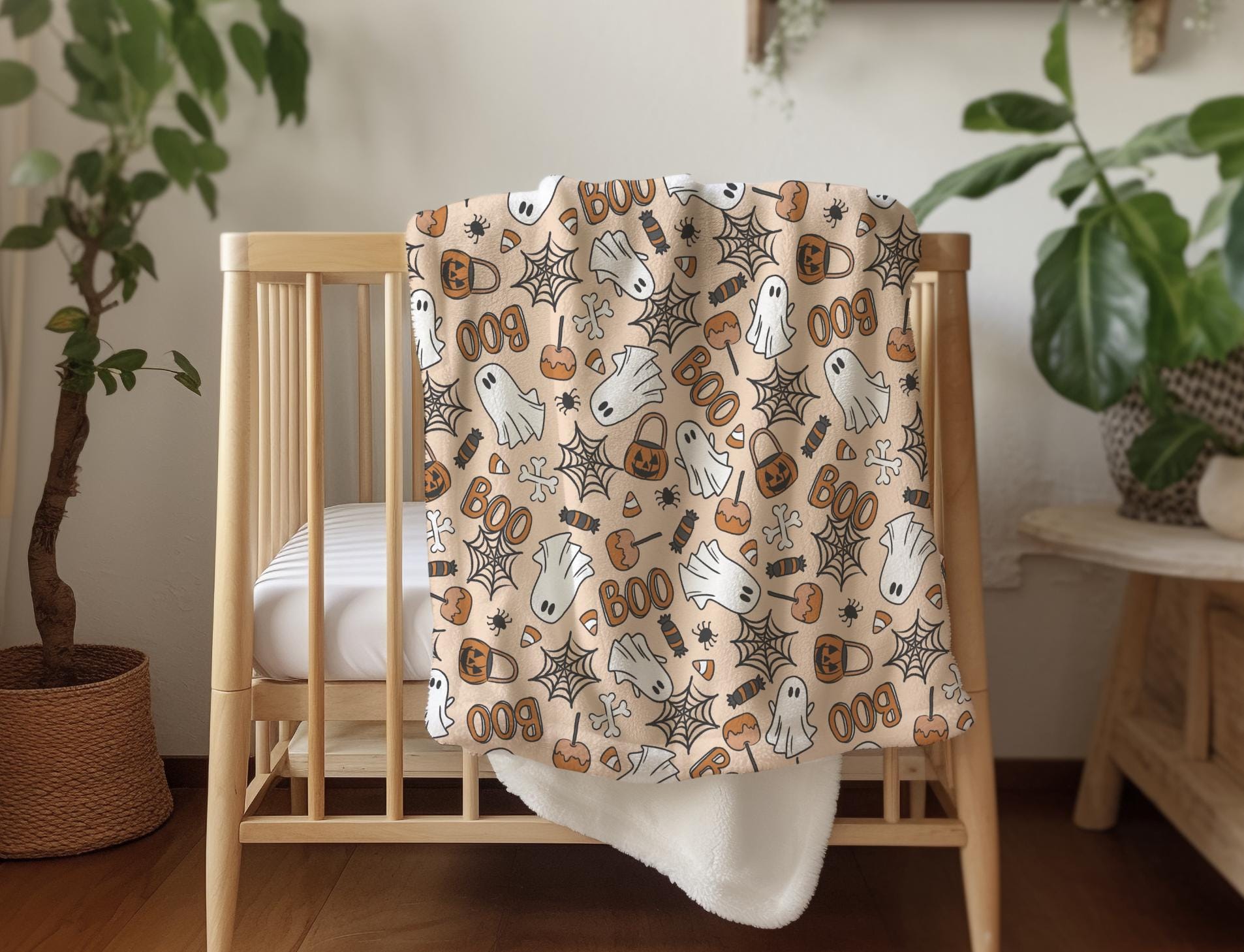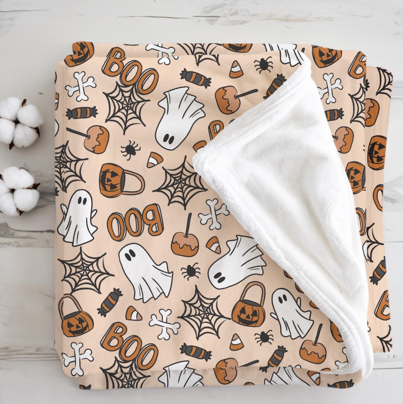 Ghosts - Orange Boo, Sherpa Fleece Blanket, Decor, Kids Bedding, Blankets, Children's, Ghost Halloween, Candy, Boo, Fleece Blanket